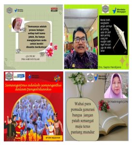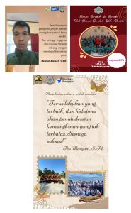 1. Pembiasaan Motivasi pagi sebelum Beraktifitas Kegiatan memberikan motivasi pagi yang dilaksanakan oleh guru sebelum beraktifitas secara bergantian setiap harinya merupakan strategi pembiasaan guru untuk selalu memotivasi dan termotivasi dalam melaksanakan tugas mengajar yang akan berdampak pada pembelajaran yang menyenangkan . Motivasi yang disampaikan dibuat dalam bertuk poster yang kemudian di share dan di publikasikan di medsos guru dan sekolah.