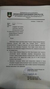 Hal tersebut tertuang dalam surat resmi Bakesbangpol Kota Surakarta Nomor B/1200/1.4.91/2513 tertanggal 9 Oktober 2025. Surat itu ditandatangani langsung oleh Kepala Bakesbangpol Kota Surakarta, Drs. Agus Santoso, M.M.