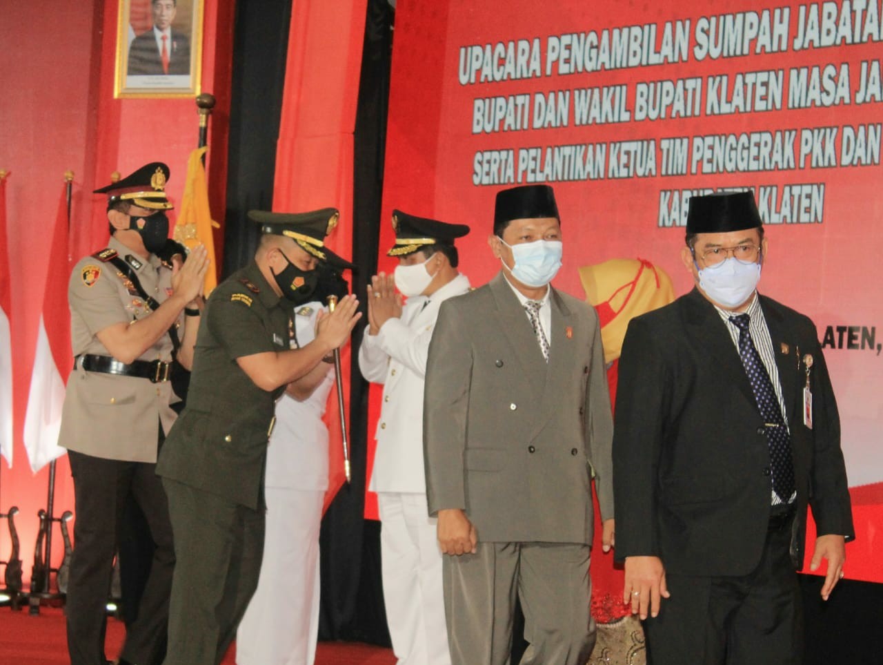 Acara pelantikan Bupati dan Wakil Bupati Klaten tersebut dihadiri langsung oleh Sekda Klaten, Drs H Jaka Sawaldi MM, Ketua DPRD Klaten, Hamenang Wajar Ismoyo.S.Kom, Dandim 0723/ Klaten, Letkol Inf Joni Eko Prasetyo, Kapolres Klaten, AKBP Edy Suranta Sitepu S.I.K. M.H, Kajari Klaten, Edi Utama.SH.MH, Dandiklatpur Rindam IV/ Diponegoro, Letkol Ginda Muhammad Ginanjar, Ketua Pengadilan Negeri Klaten, Hera Kartininingsih.SH.MH, Ketua Pengadilan Agama Klaten, Drs H Tubagus Masrur.SH, semua Asisten Sekda Klaten, Tokoh Agama dan Tokoh masyarakat Klaten.