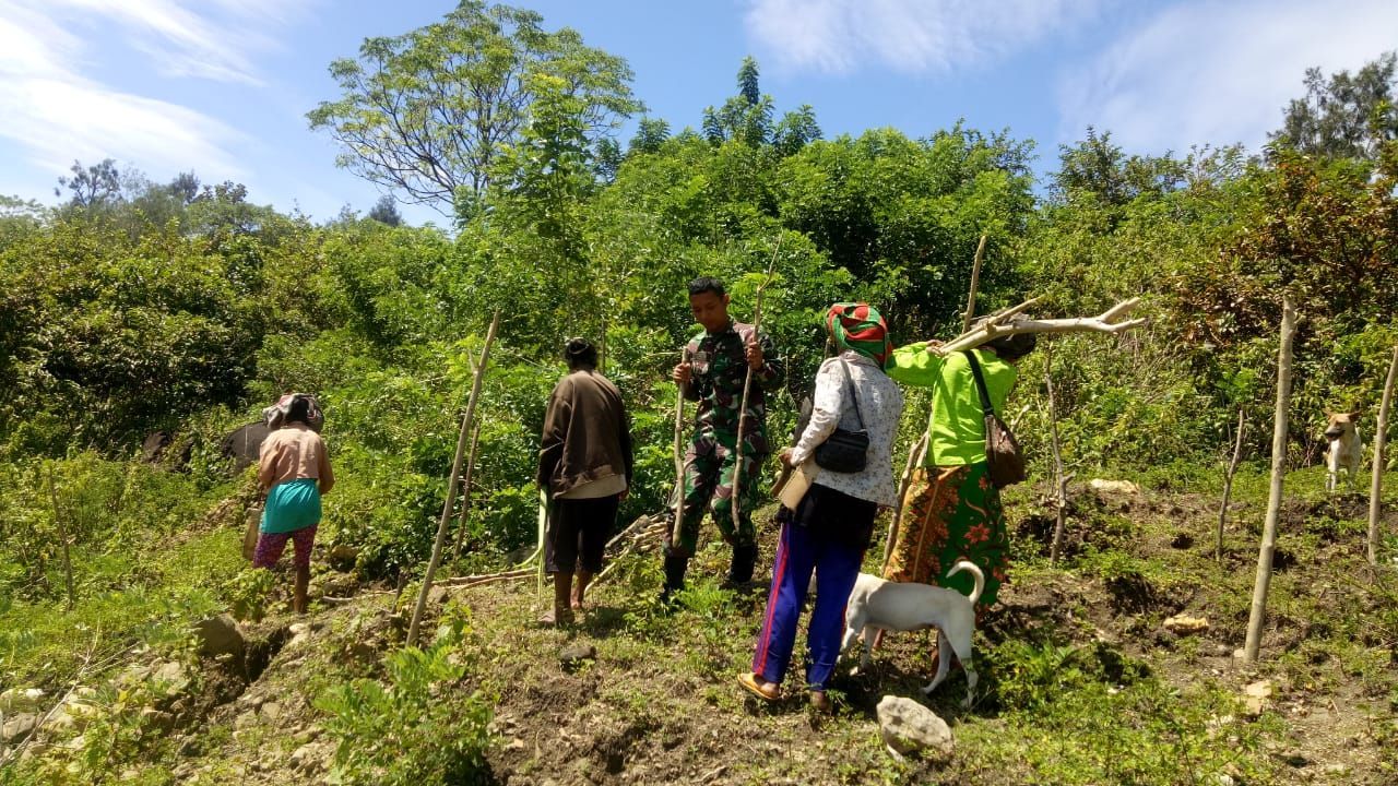 Pagi ini Pos Nananoe membantu masyarakat menanam pohon di titik rawan longsor di Desa Nananoe Kec.Nanaet Duabesi Kab. Belu dimana Desa Nananoe terdapat banyak perbukitan sehingga sering terjadinya longsor ketika musim hujan tiba.