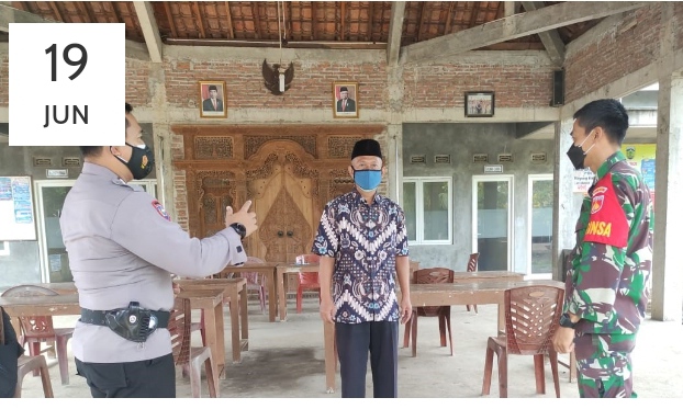 Bhabinkamtibmas Polsek Mayong Bripka Arif S menyambangi perangkat desa sekaligus koordinasi memberikan himbauan agar warga guna terapkan protokol kesehatan.