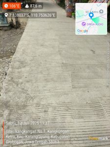 Salah satu proyek yang menjadi sorotan adalah jalan cor di Dusun Kangkungan. Berdasarkan papan informasi proyek, pekerjaan tersebut memiliki anggaran sebesar Rp257 juta dengan rincian volume panjang 202 meter, lebar 3,5 meter, dan ketebalan 15 cm. Namun proyek ini dikerjakan secara manual menggunakan molen, bukan menggunakan sistem beton jayamix (ready-mix) yang lebih terjamin kualitasnya.