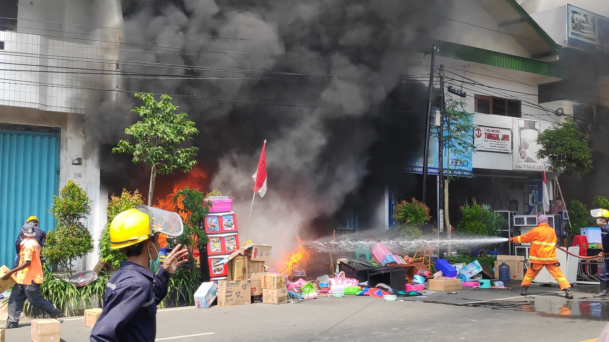 LINTASINDONEWS.com – REMBANG JATENG – Kebakaran besar terjadi di pusat pertokoan furniture dan perabot rumah tangga di Rembang, Selasa siang tadi tanggal 5 Agustus 2020 .